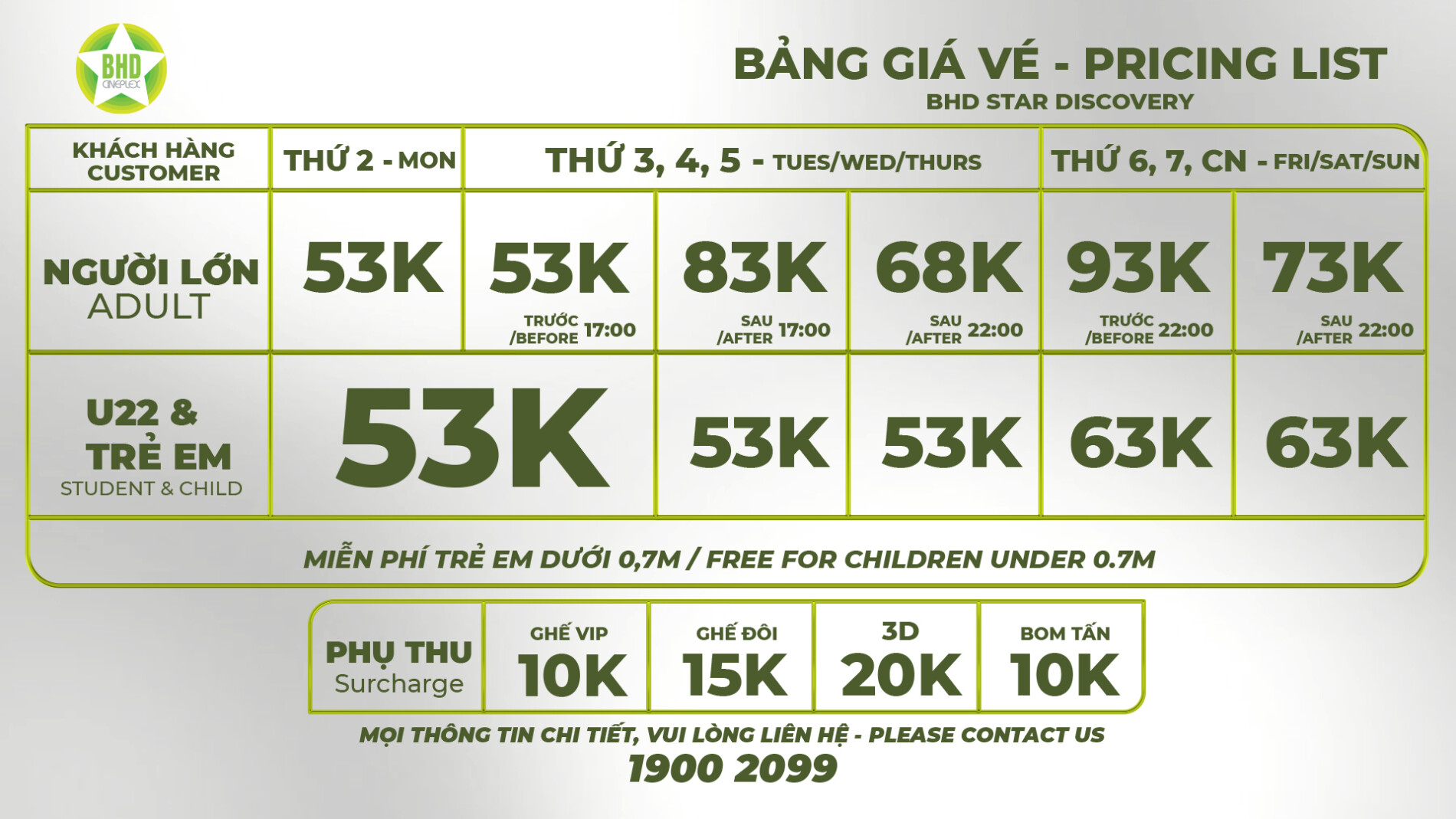 – Suất chiếu đặc biệt áp dụng giá vé theo khung giờ của ngày. Không áp dụng các giá vé ưu đãi dành cho  Privilege Voucher/ Staff Voucher, Happy Day. Trong trường hợp Suất chiếu đặc biệt cùng ngày với Happy Day sẽ áp dụng giá vé của Thứ 3.