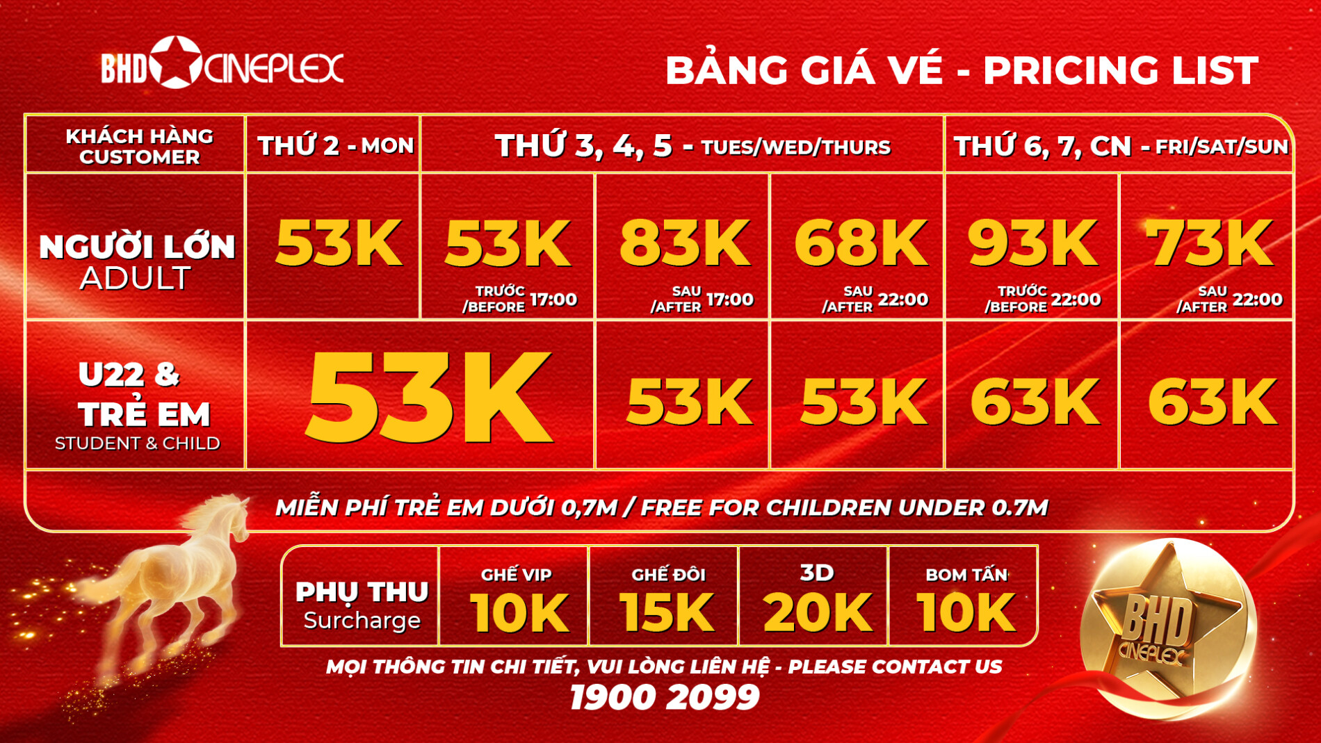 – Suất chiếu đặc biệt áp dụng giá vé theo khung giờ của ngày. Không áp dụng các giá vé ưu đãi dành cho Privilege Voucher/ Staff Voucher, Happy Day. Trong trường hợp Suất chiếu đặc biệt cùng ngày với Happy Day sẽ áp dụng giá vé của Thứ 3.