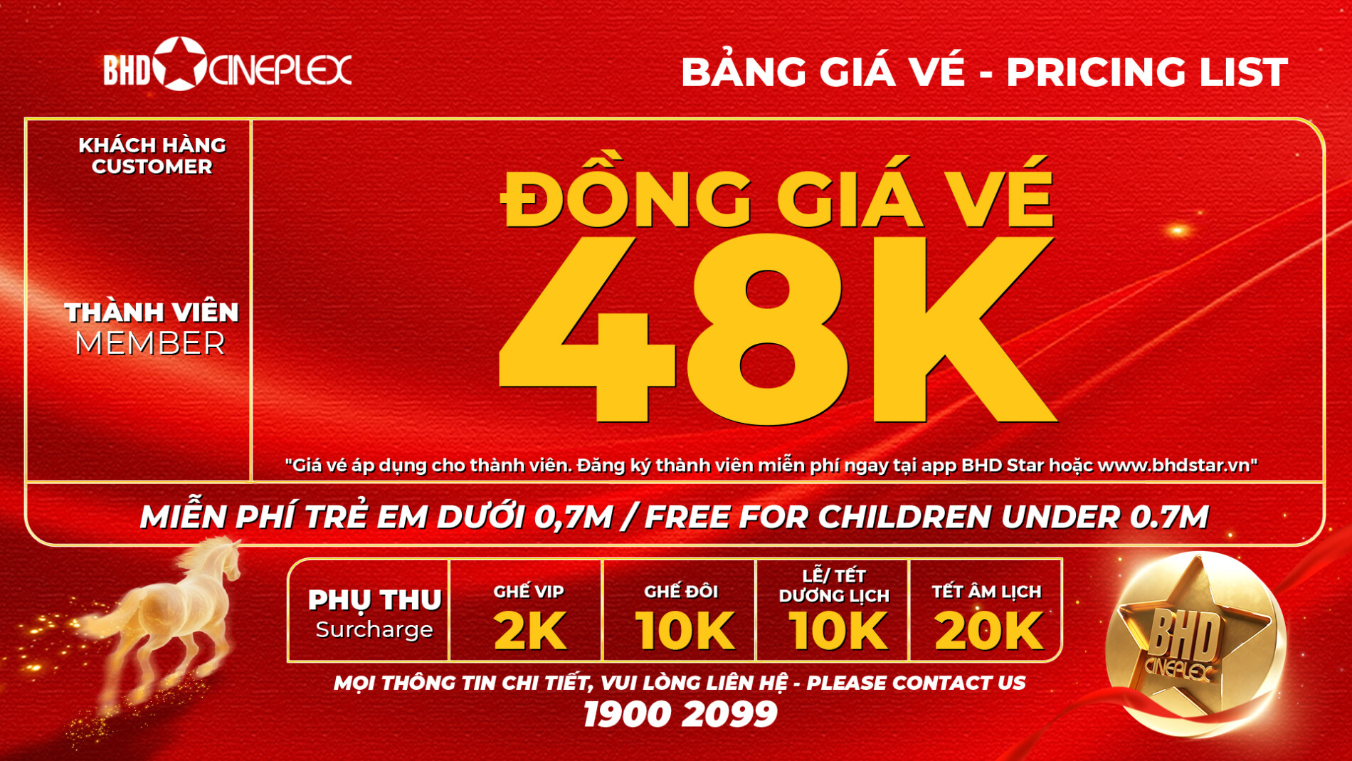 – Suất chiếu đặc biệt áp dụng giá vé theo khung giờ của ngày. Không áp dụng các giá vé ưu đãi dành cho Privilege Voucher/ Staff Voucher, Happy Day. Trong trường hợp Suất chiếu đặc biệt cùng ngày với Happy Day sẽ áp dụng giá vé của Thứ 3.