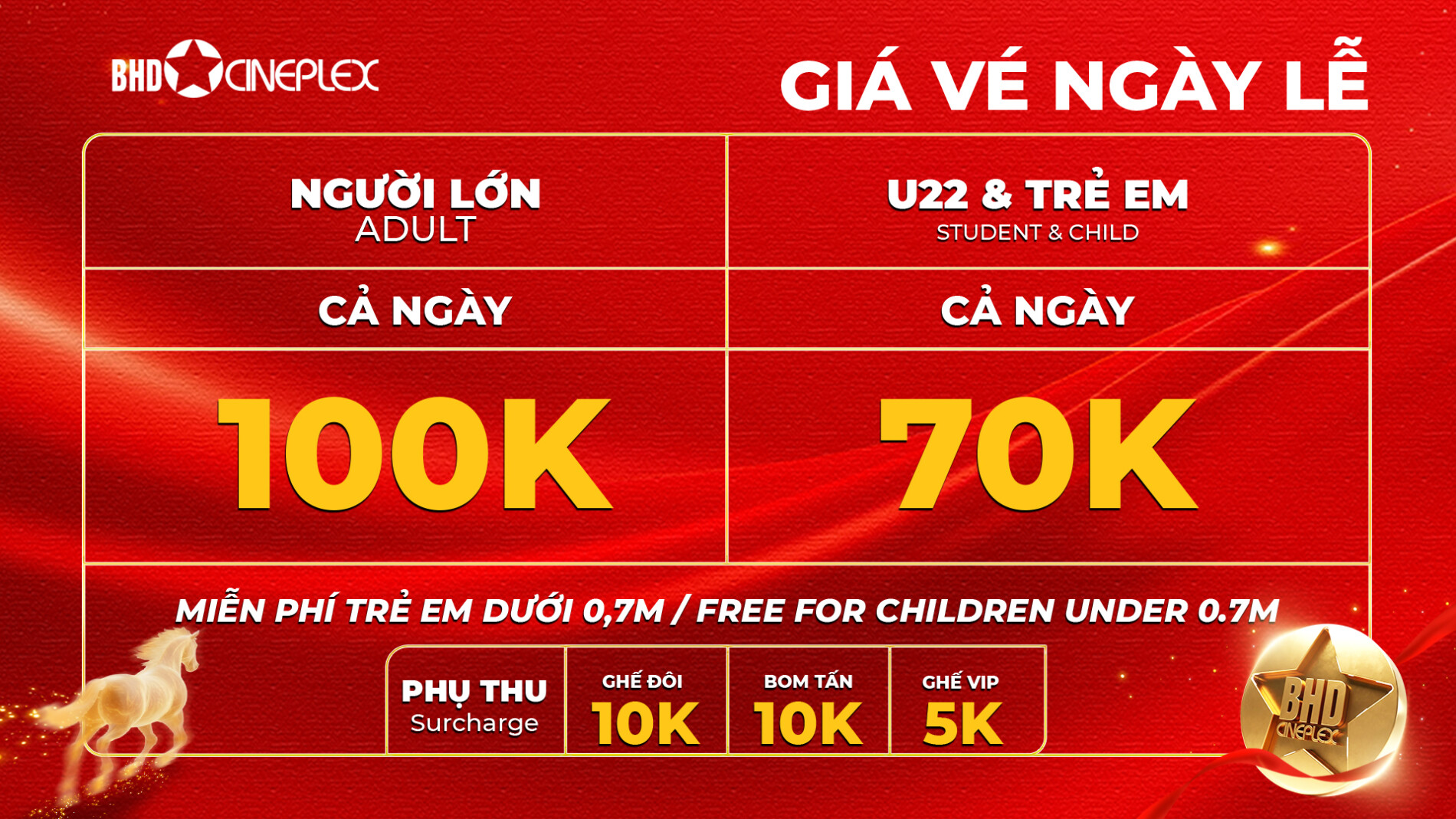 – Giá vé Tết Âm Lịch sẽ được áp dụng riêng.