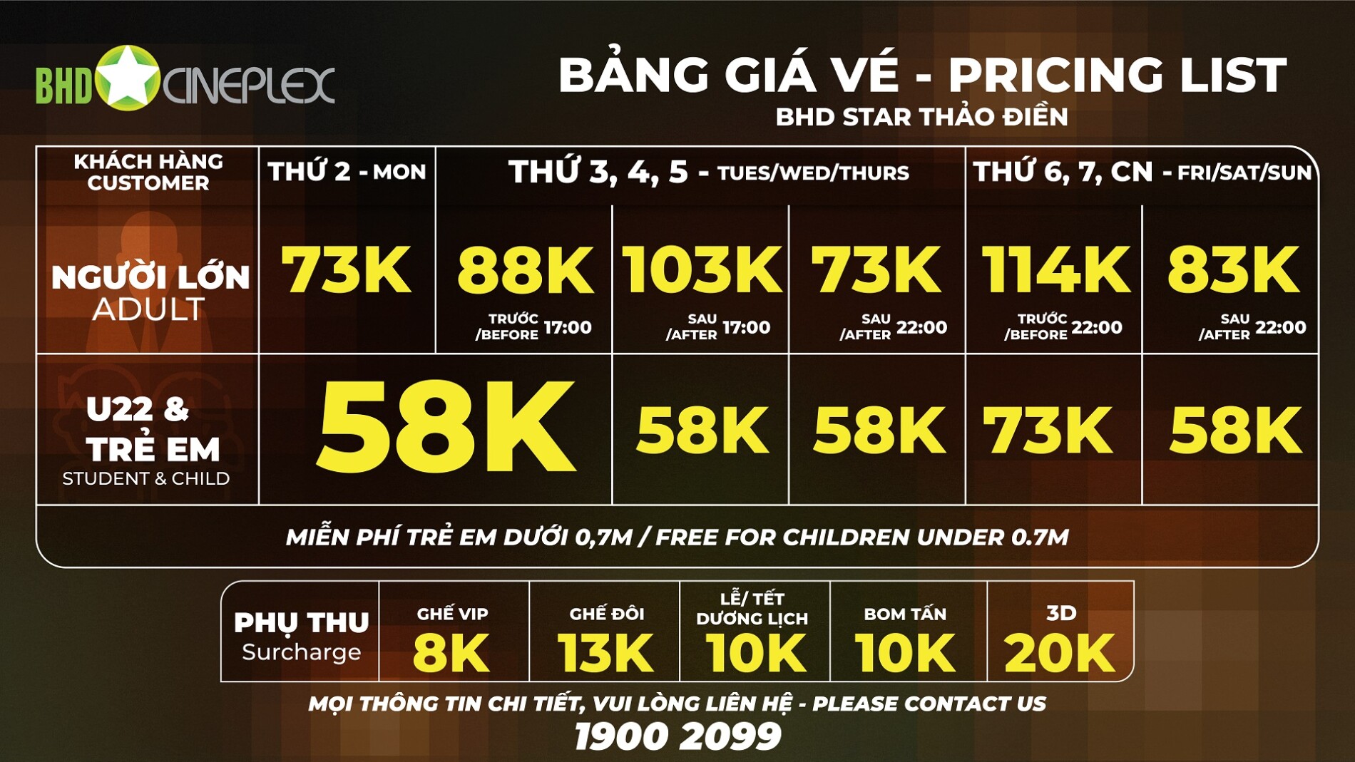 – Suất chiếu đặc biệt áp dụng giá vé theo khung giờ của ngày. Không áp dụng các giá vé ưu đãi dành cho Privilege Voucher/ Staff Voucher, Happy Day. Trong trường hợp Suất chiếu đặc biệt cùng ngày với Happy Day sẽ áp dụng giá vé của Thứ 3.
